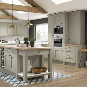 The Madison Light Grey is a Contemporary Kitchen from the Kitchen Stori Range with a Five Piece, Shaker style door in solid wood.