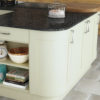 Painted and Oak finishes are beautifully combined here, enhanced by the inclusion of curves and straight lines, set off by an open shelving area.