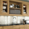 Open shelving and plate racks allow you to display special items in plain view and with easy access.  A great way to show off all your most treasured kitchen items!